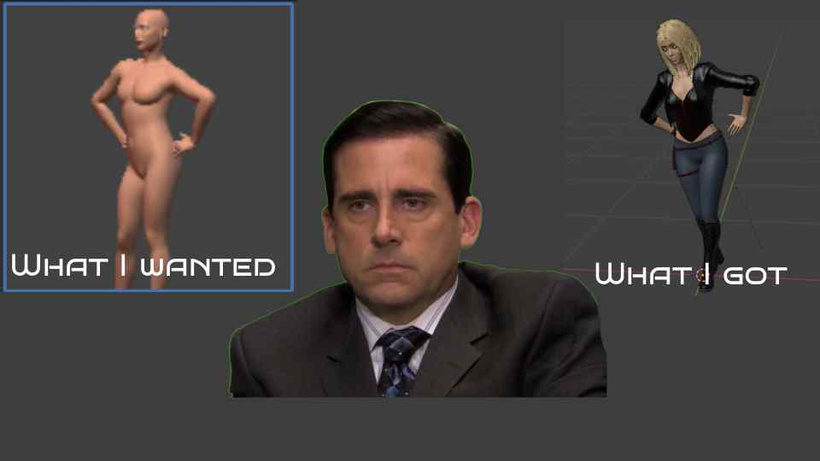 - Body positioning pose library - Unfortunately, while this has been a helpful piece of the workflow, it's also been slightly annoying. Don't get me wrong, this has still been immensely helpful. But after applying a pose, for some reason and on some random body poses, they apply incorrectly. I'll show an example below, but you can see there's a few issues. Her body is TILTED to the left, causing the hands to not line up. Okay I'm being picky and it is not that big of a deal, but it still causes me to stop my workflow and fix these poses. In the long run, this is fine, I'll be able to save the "fixes" so that each of the poses are corrected and won't have that problem again; but that's a lot of fixes to save! All in all: it's been a good workflow change, and it's still helped to get poses in the scene very quickly!